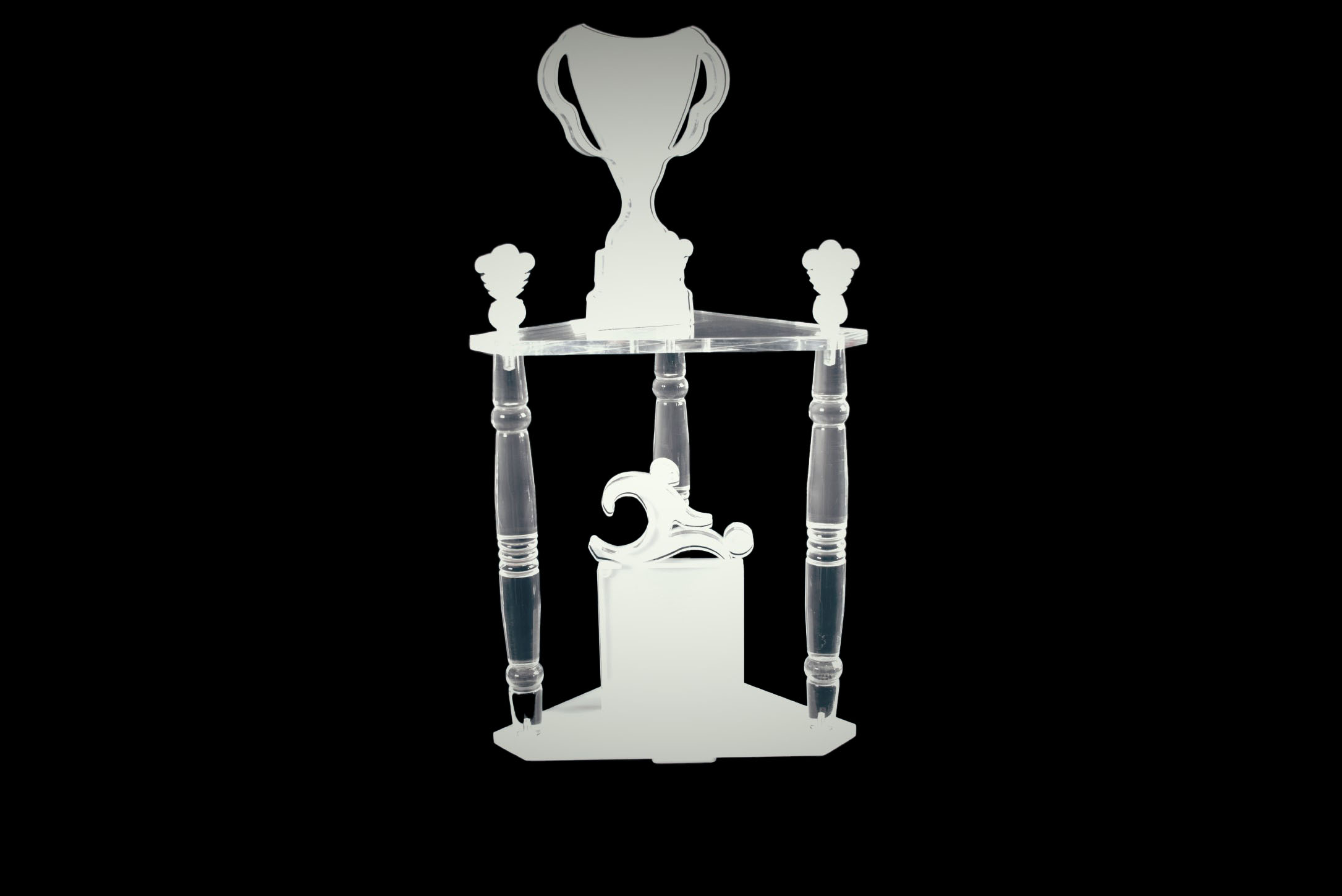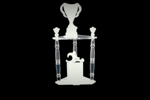 TROFEO FABRICADO EN 2D. COMBINANDO EL METACRILATO BLANCO CON EL TRANSPARENTE.